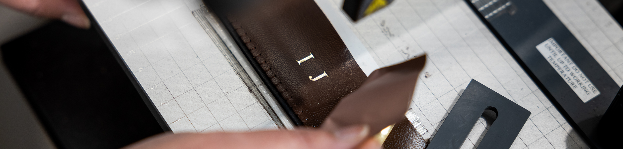 The letters comprising your initials or message are embossed into the leather to leave a permanent indented impression of your chosen design. Simply add embossing using the drop down menu on each product listing page, write your custom lettering in the space provided as you wish it to appear.