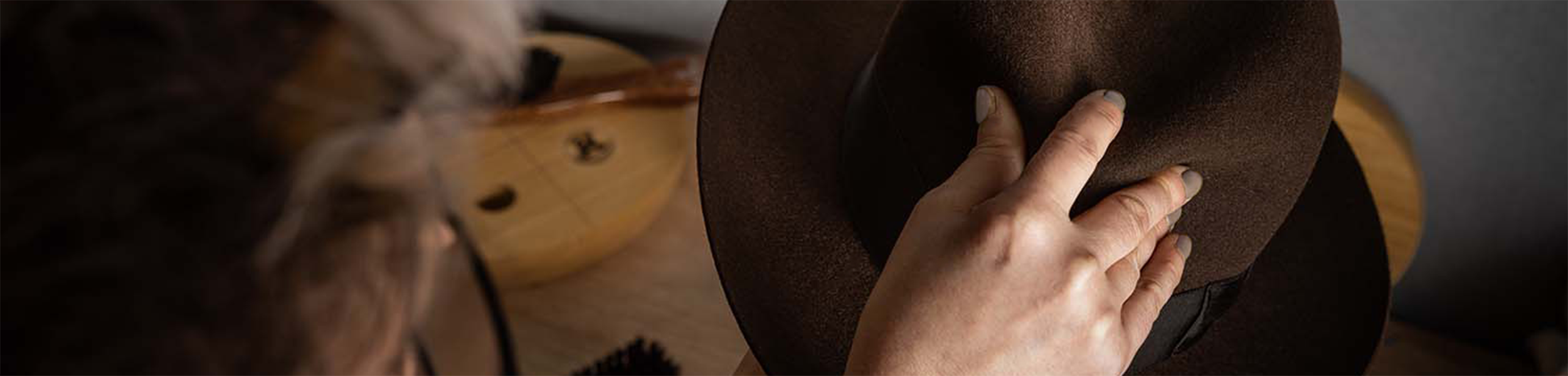 STORAGE: Storing your hat in a hat box prevents dust from accumulating on the fur felt and provides protection from sun damage and from being crushed. Storing your hat with a hat-jack or mould inside that approximates your head size/shape can be a useful way to store your hat and allow it to further conform to your head shape whilst not in use. Never leave your hat in a hot car as this can fade the felt & ribbon and can also age the leather sweatband.