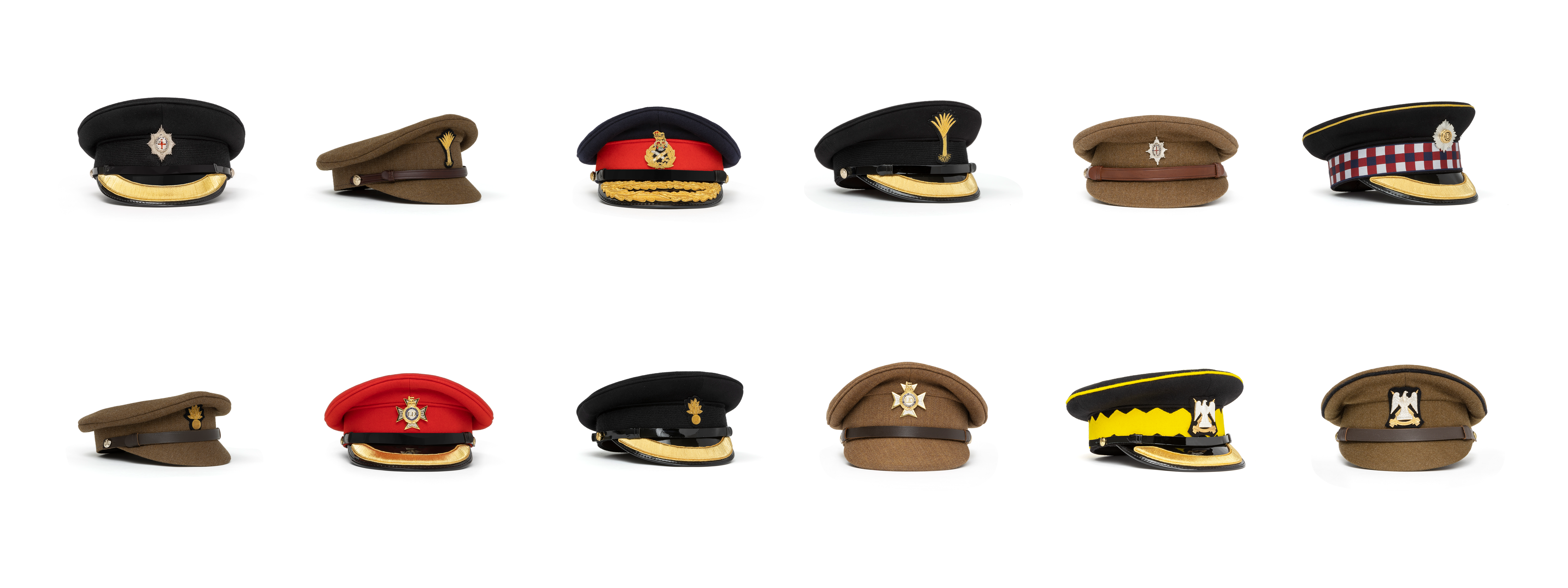 The military was and still is an equally important patron. Nearly every regiment patronises Herbert Johnson Military for dress caps, khaki caps and berets. Bombay bowlers and Polo caps were specially made for Lord Kitchener’s troops in Sudan. Herbert Johnson Military Hats are best known for their ‘floating bevel’. This concept dates from World War I when Herbert Johnson supplied the ‘soft topped’ cap, then known as the ‘Jack Johnson’ in response to requests by Generals Haig and French and other senior officers for both a practical and comfortable cap for field operations. After the 2nd World War, many British Regiments who had liked the ‘soft topped’ cap for field operations, requested that Herbert Johnson produce their dress caps also in the ‘floating bevel’ style.