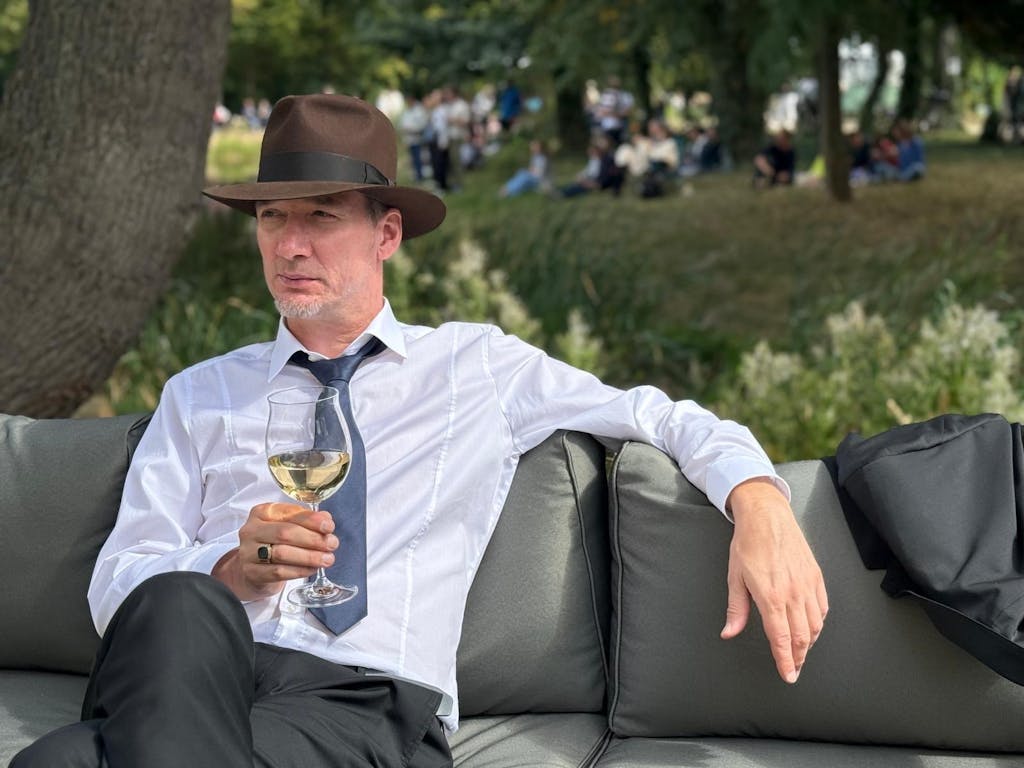 A versatile style, it is easily paired with a suit, just as Indy does when he steps onto Venice Pier.